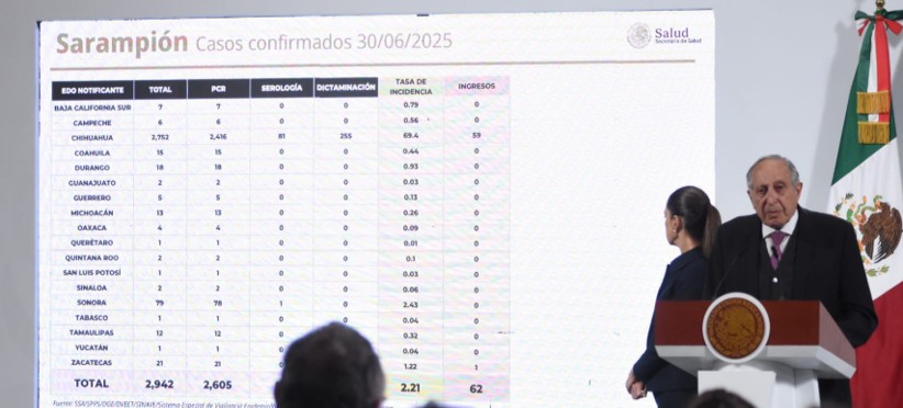 Durante la conferencia matutina del 1 de julio, el secretario de Salud, David Kershenobich, informó que México registra 2,942 casos de sarampión, concentrando 2,752 en Chihuahua, lo que ha permitido enfocar esfuerzos en esa entidad. La tasa de incidencia, que llegó a ser de 69.4, actualmente se ubica en 2.21 casos por cada 100 mil […]