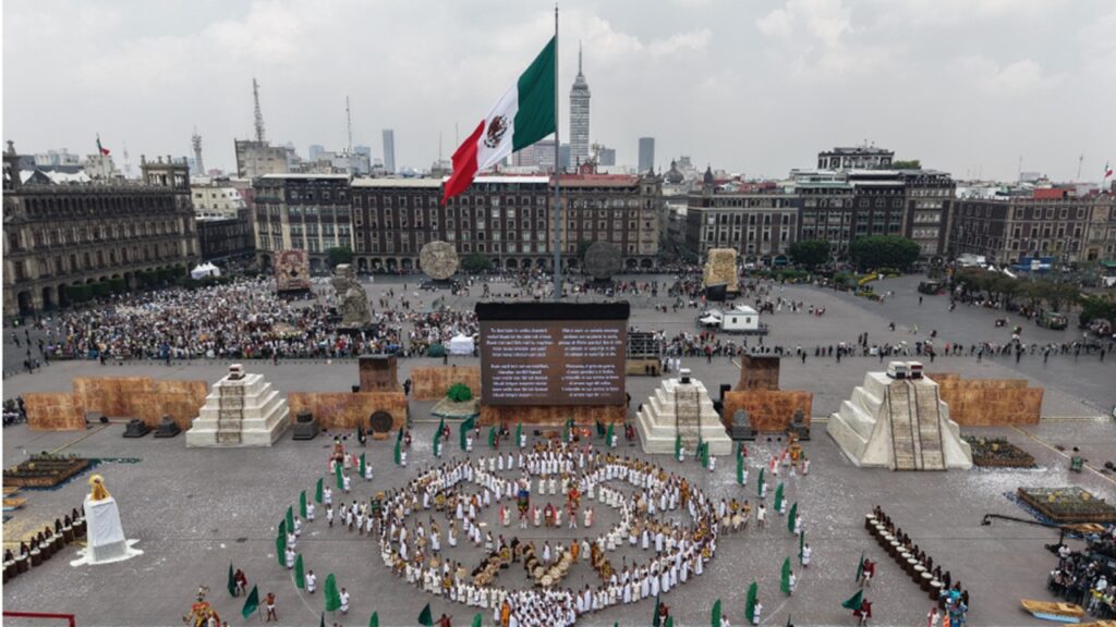 En el Zócalo, la presidenta Claudia Sheinbaum encabezó la ceremonia por los siete siglos de fundación de México-Tenochtitlan, símbolo de organización, poder, ciencia, arte y visión. Señaló que este legado vive en la resistencia silenciosa de los pueblos, en la lengua náhuatl, en el maíz, la medicina tradicional, en los rituales y en nuestro nombre: […]