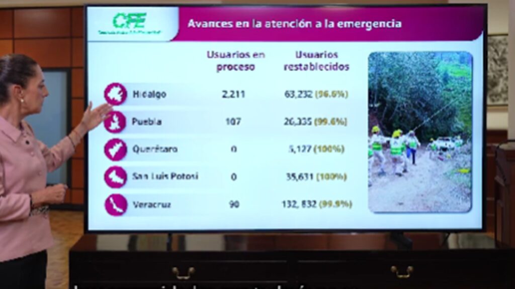 El Gobierno de México informó sobre los avances en la atención a la emergencia provocada por lluvias extraordinarias en Veracruz, Puebla, Hidalgo, Querétaro y San Luis Potosí, resultado del trabajo coordinado entre autoridades federales, estatales y locales. Afectaciones humanas Infraestructura y servicios Apoyos y atención social Participación institucional Las acciones han sido coordinadas por: