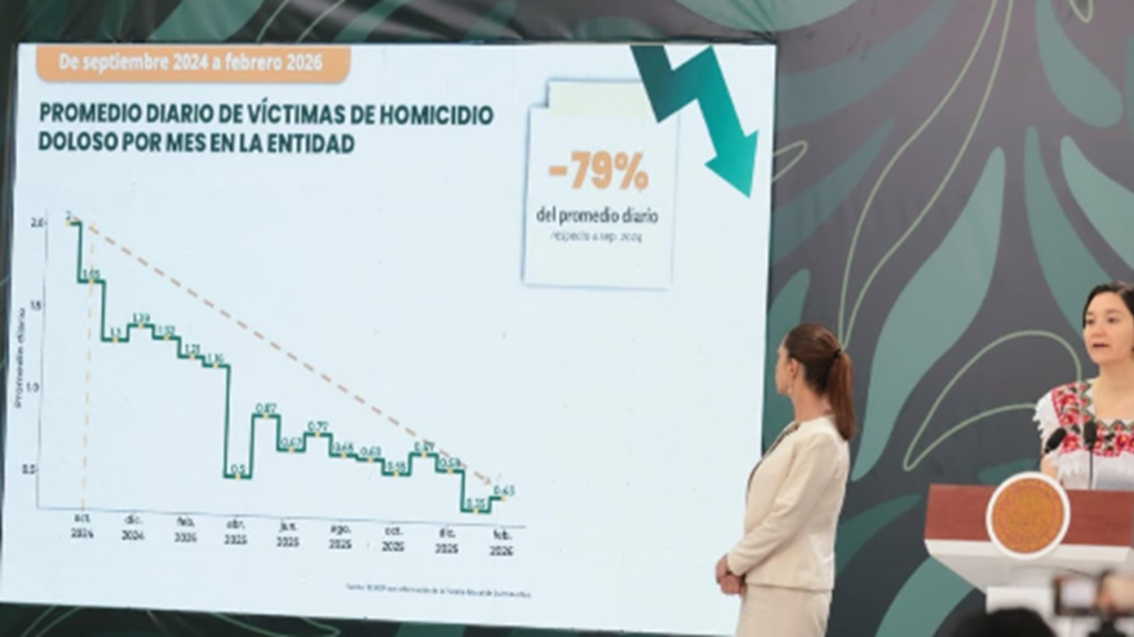 Desde Cancún, el Gobierno de México informó que Quintana Roo registró una reducción del 79% en los homicidios dolosos entre septiembre de 2024 y febrero de 2026, como resultado del trabajo coordinado entre el gobierno federal y el estatal, durante la conferencia matutina “Las mañaneras del pueblo”, encabezada por la Presidenta Claudia Sheinbaum Pardo. La […]