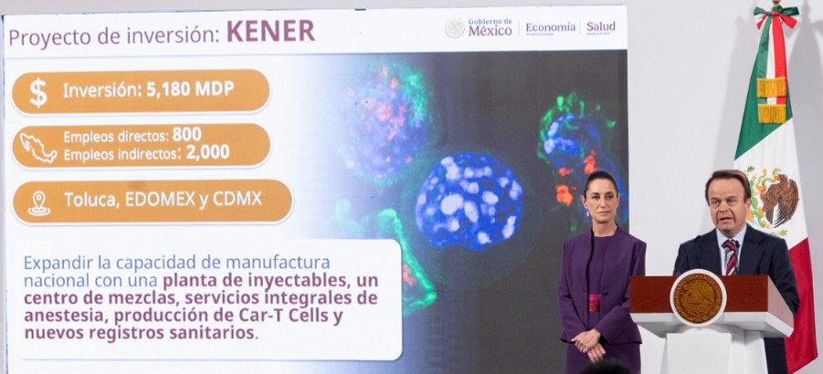 Se indicó que la empresaria Kener realizará una inversión de 5 mil 180 millones de pesos para el desarrollo de una planta de inyectables, un centro de mezclas, servicios integrales de anestesia, producción de Car-T Cells y nuevos registros sanitarios.
