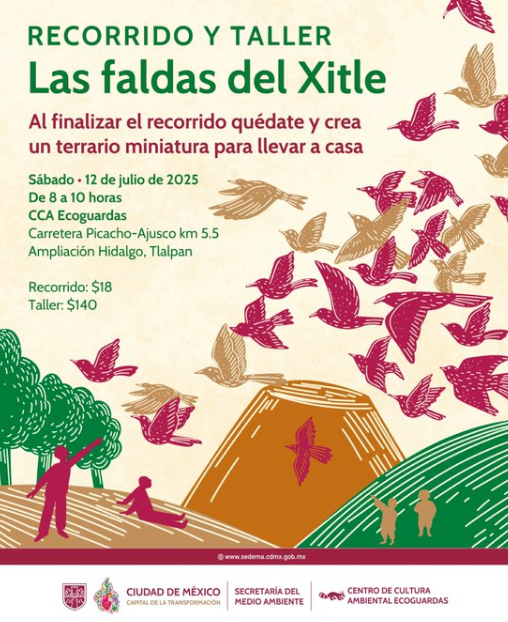 La Secretaría del Medio Ambiente (SEDEMA) de la Ciudad de México, a través de la Dirección General del Sistema de Áreas Naturales Protegidas y Áreas de Valor Ambiental (DGSANPAVA) y el Centro de Cultura Ambiental Ecoguardas, invita a niñas, niños, jóvenes y adultos al recorrido-taller “Las faldas del Xitle”, una experiencia inmersiva por uno de los ecosistemas más emblemáticos del sur de la capital.