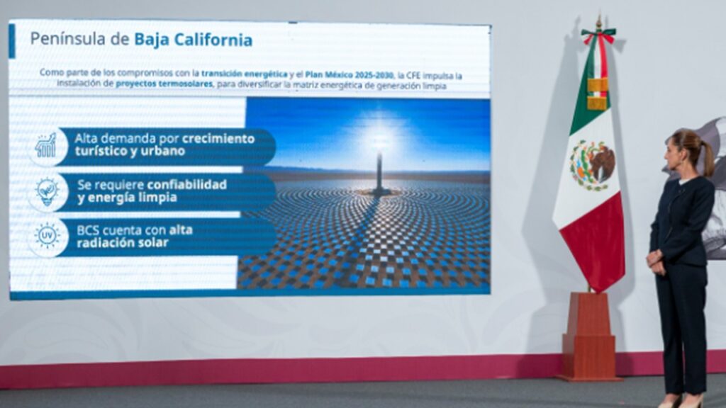 La presidenta mexicana, Claudia Sheinbaum encabezó la conferencia matutina en la que Luz Elena González, titular de la Secretaría de Energía, anunció una inversión de 800 millones de dólares en la construcción de dos centrales termosolares en el estado de Baja California Sur.