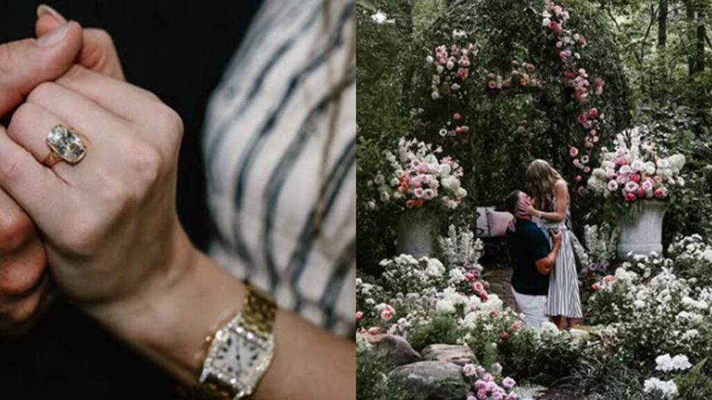 La propuesta se realizó en un jardín rodeado de flores, donde Kelce se arrodilló frente a Swift, sellando el momento con un impresionante anillo de estética vintage. La joya, diseñada por Kindred Lubeck, presenta un diamante antiguo de ocho quilates montado en oro amarillo de 18 quilates, con detalles grabados a mano. Se estima que su valor ronda el medio millón de dólares.