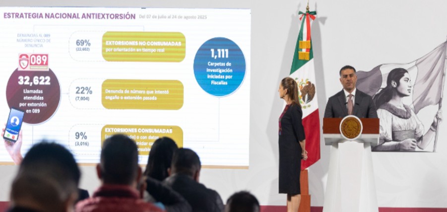 “Hemos observado un aumento en el número de denuncias en el 089, donde se han recibido a la fecha más de 32 mil 600 llamadas y 69 por ciento, 22 mil 602 llamadas fueron extorsiones, no consumadas gracias a la orientación de los operadores en tiempo real y a la campaña de prevención que realizamos en todo el país”.