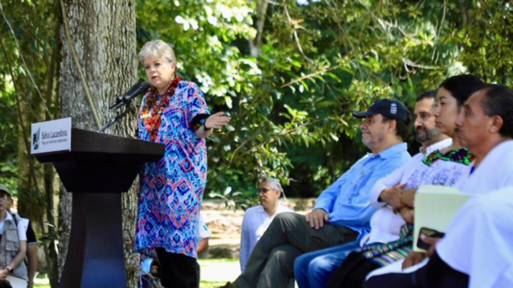 Durante su visita a Bonampak, Bárcena sostuvo un diálogo directo con representantes del pueblo lacandón de Lacanjá Chansayab, acompañada por el gobernador Eduardo Ramírez Aguilar. En el encuentro, se entregaron apoyos del Programa de Pago por Servicios Ambientales, modalidad Fondos Concurrentes, a comunidades guardianas de la selva como Frontera Corozal, Nahá, Metzabok y Nueva Palestina.